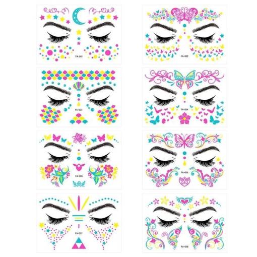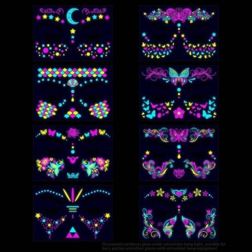 Un tatuaj fluorescent fermecător pentru față va oferi aspectului tău un efect unic și radiant.