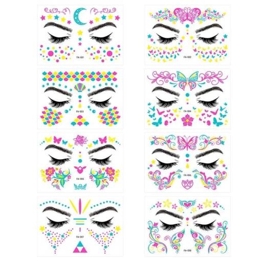 Un tatuaj fluorescent fermecător pentru față va oferi aspectului tău un efect unic și radiant.