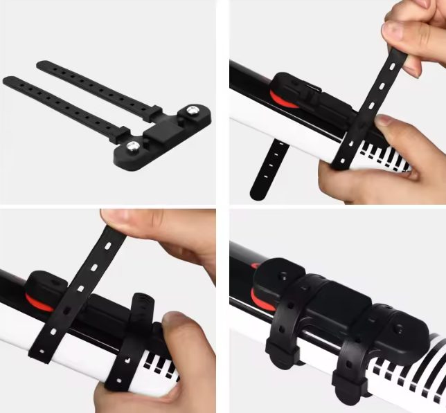 Prindeți adaptorul de tubul bicicletei și fixați-l cu benzile.