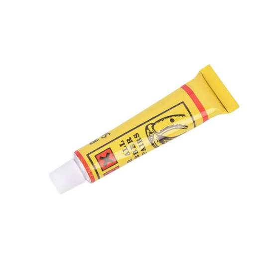 Într-o cutie mică de plastic, veți găsi tot ce aveți nevoie, inclusiv petice, lipici, șmirghel, tuburi de ghidare și levier pentru a scoate cu ușurință camera.