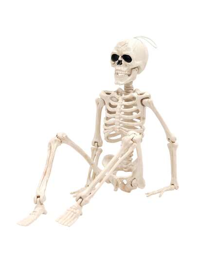 Materialul din plastic rezistent și formele realiste asigură că scheletul va rezista utilizărilor repetate, fiind totodată ușor. Poate fi suspendat, așezat sau integrat în scenografie. Cu o înălțime de la picior la cap de 40 cm, este un element decorativ care va atrage atenția fără a necesita mult spațiu.
