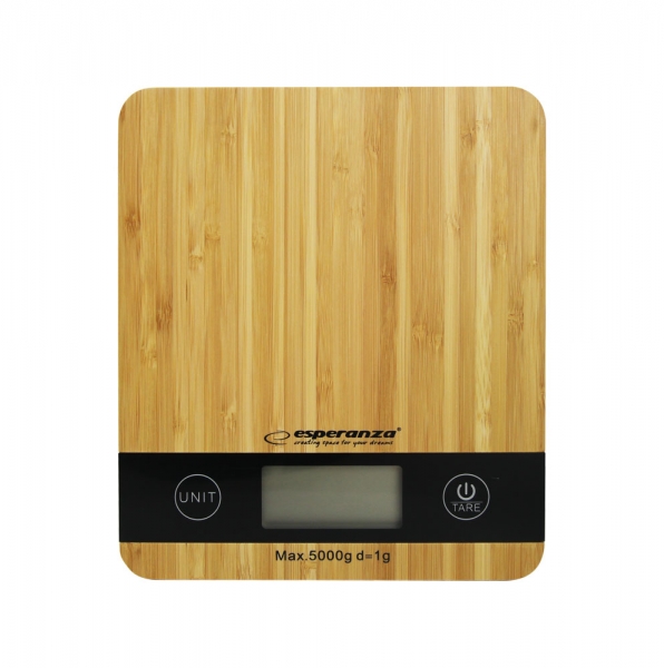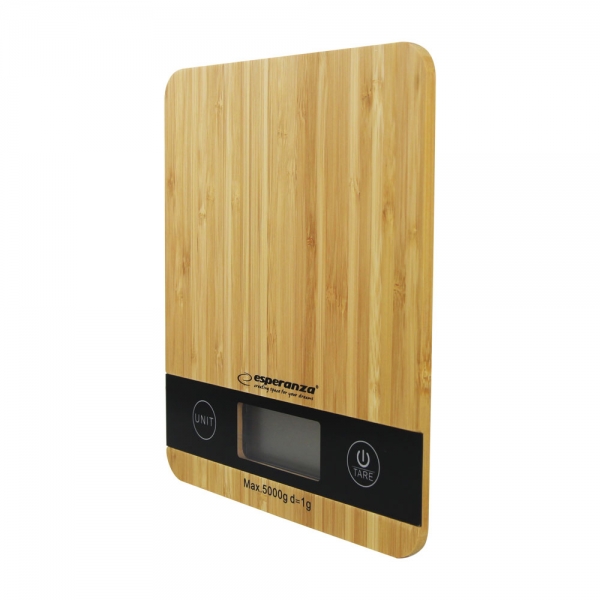 Cantarul de bucătărie din bambus natural - extrem de precis, foarte subțire, cu un model modern.