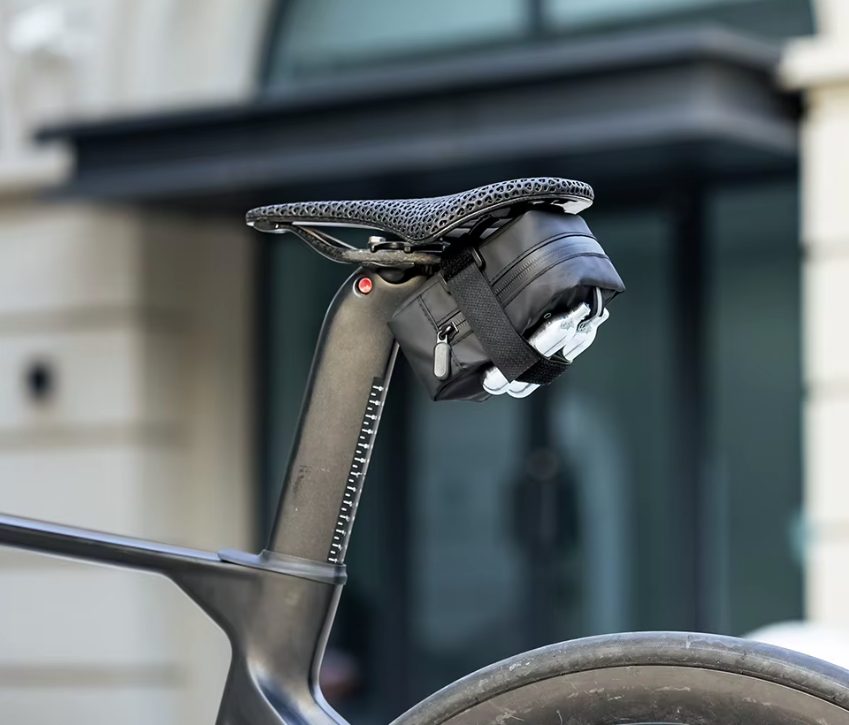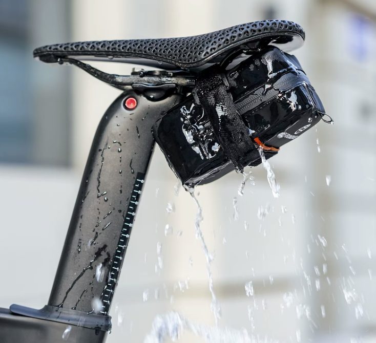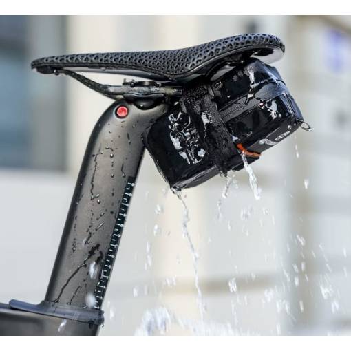 Geantă sub șa stilată și practică ce protejează bicicleta în orice vreme.