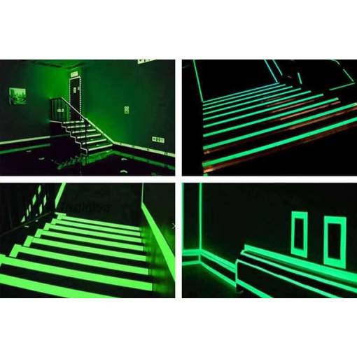 Practică bandă luminescentă cu o aderență puternică și strat adeziv, ideală pentru marcarea căi, treptelor, întrerupătoarelor, ușilor sau decorațiunilor. După expunerea la lumină (naturală sau artificială) strălucește în întuneric și crește siguranța și estetica casei dvs.