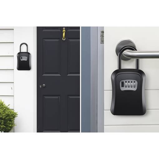 Acest seif de închidere pentru chei rezistent combină un cod mecanic sigur de 4 cifre, materiale de calitate și utilizare variabilă. Datorită arcului său robust, funcționează ca un lacăt de închidere, astfel încât să-l puteți agăța ușor de o ușă, balustradă sau alt loc fix fără a necesita găurire.