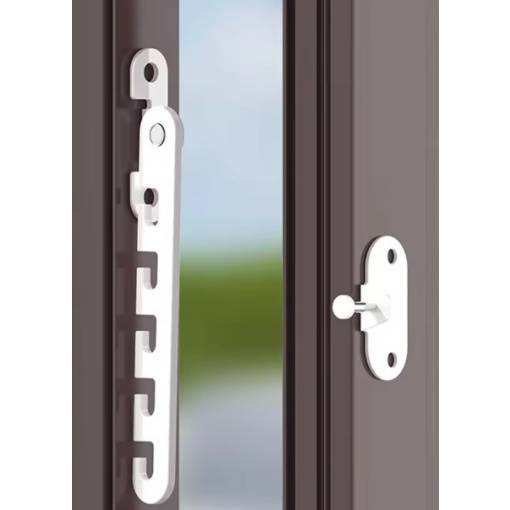 Practic și sigur zăvor metalic cu șuruburi de montaj. Asigură limitarea deschiderii feronerie sau ușilor de balcon și servește ca o asigurare împotriva căderii, dar și ca element de siguranță suplimentar împotriva furtului.