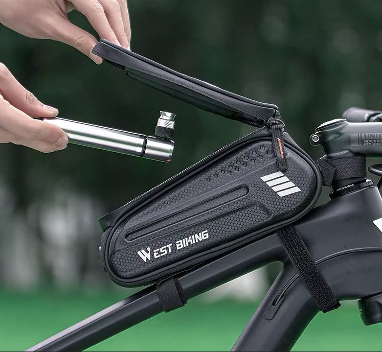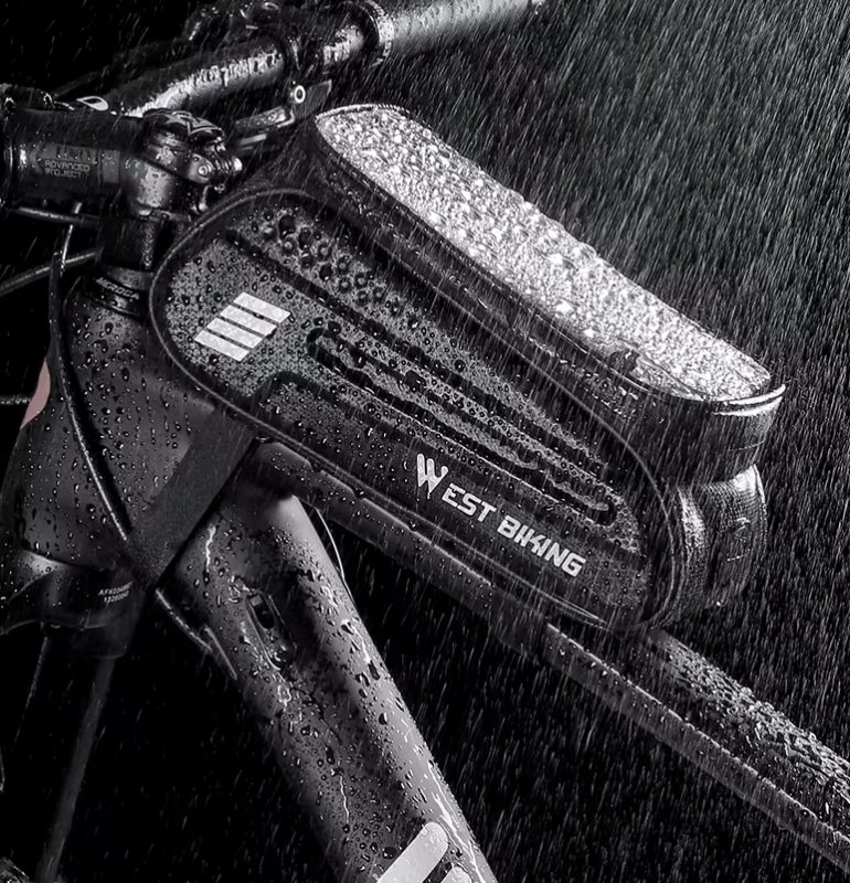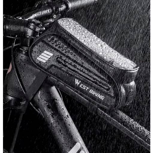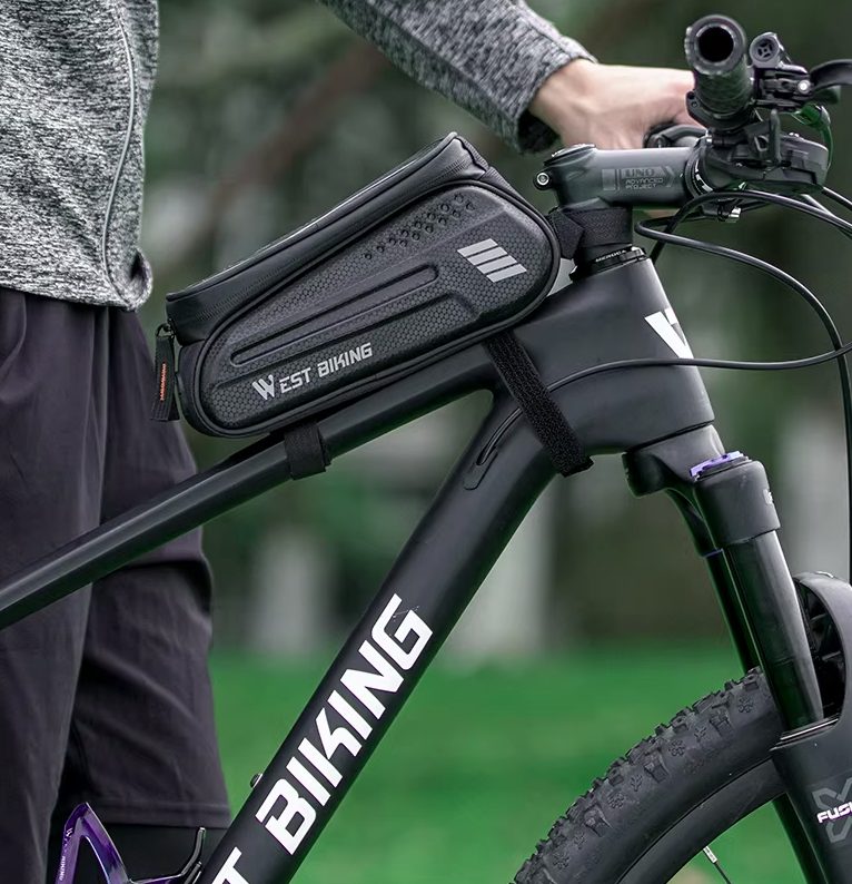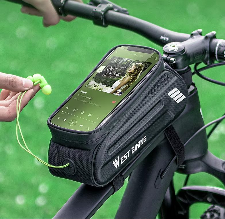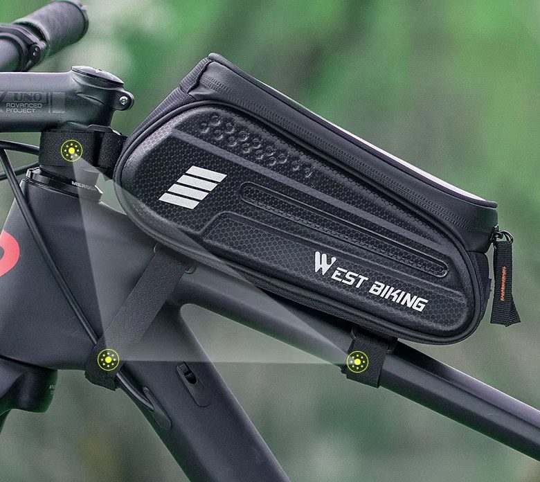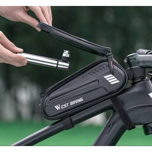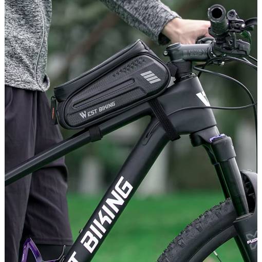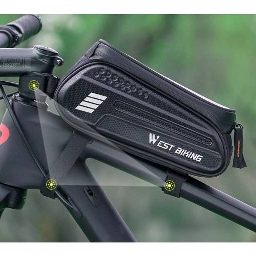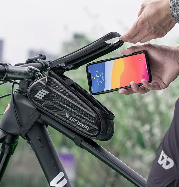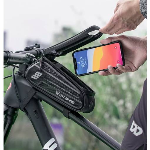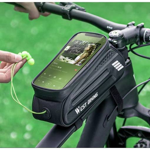 Această geantă premium pentru biciclete WEST BIKING oferă o combinație de material rezistent la apă, folie tactilă sensibilă și prindere sigură pe cadru. Permite utilizarea confortabilă a telefonului în timpul mersului și oferă suficient spațiu pentru toate lucrurile esențiale.