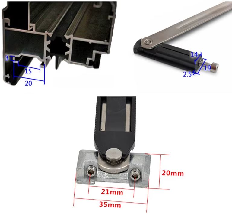 Limitator universal pentru feronerie din aluminiu, plastic sau lemn. Datorită construcției solide din aliaj de aluminiu și oțel inoxidabil, asigură stabilitate fiabilă chiar și în condiții de vânt puternic.