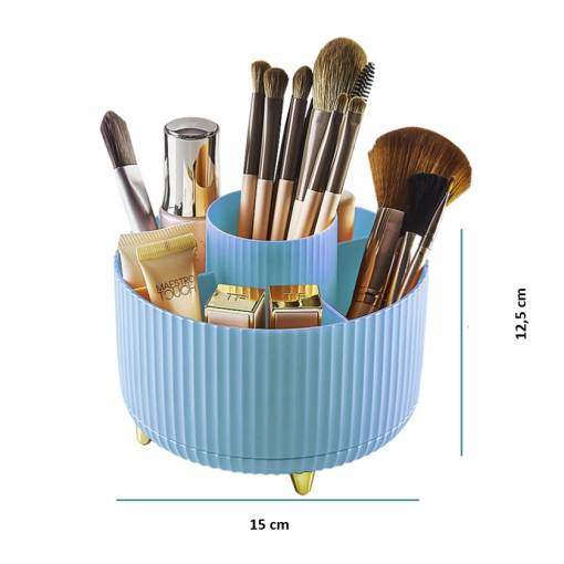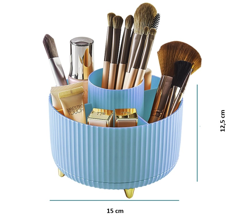 Organizator stilat și practic cu bază rotativă care vă ajută să mențineți ordinea pe masa de toaletă, în baie și pe biroul de lucru. Datorită rotirii de 360°, aveți totul la îndemână.