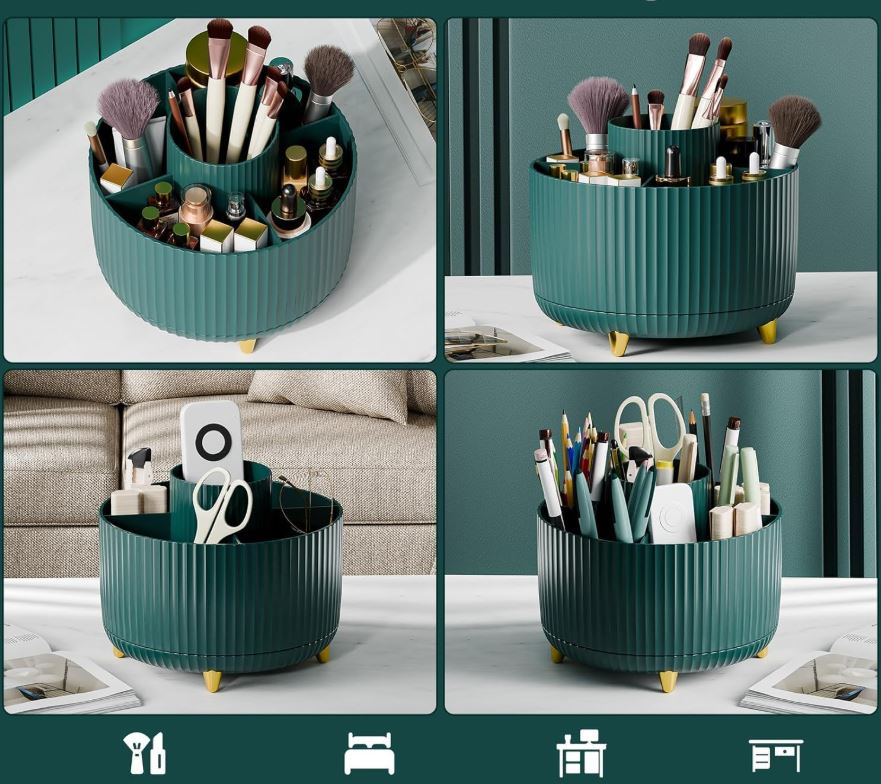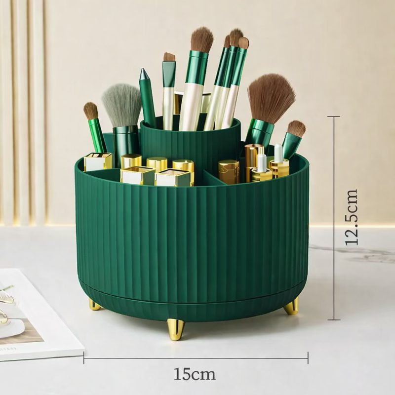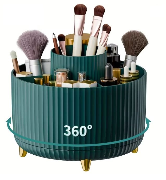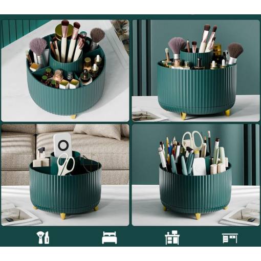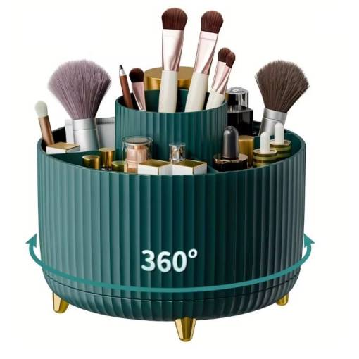 Organizatorul stilat și practic cu bază rotativă vă ajută să mențineți ordinea pe masa de toaletă, în baie sau pe biroul de lucru. Datorită rotirii de 360°, aveți totul la îndemână.