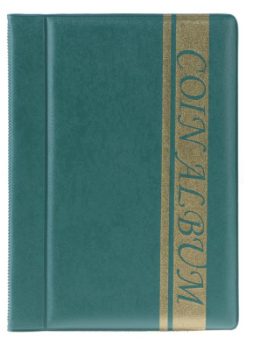 Albumul pentru monede este fabricat dintr-o imitație de piele de calitate, realizat în culorile albastru și