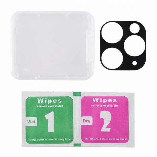 Folii de protecție din sticlă temperată, destinate camerei din spate a iPhone 11 Pro. Protejează obiectivul de zgârieturi, praf și alte daune, fără a afecta calitatea fotografiilor. Datorită tehnologiei statice, folia se instalează ușor, fără bule și se fixează bine.