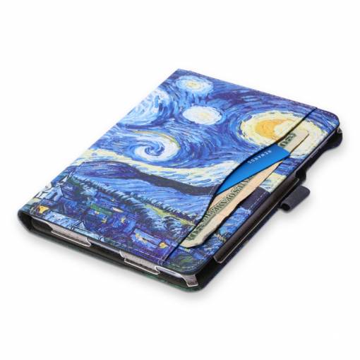 Carcasă elegantă și practică cu design artistic inspirat din pictura „Noapte înstelată”. Oferă iPad-ului tău o protecție fiabilă împotriva zgârieturilor, murdăriei și impacturilor, și totodată servește ca un suport practic pentru a viziona filme, citi sau lucra confortabil.