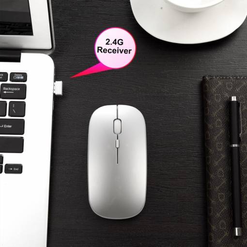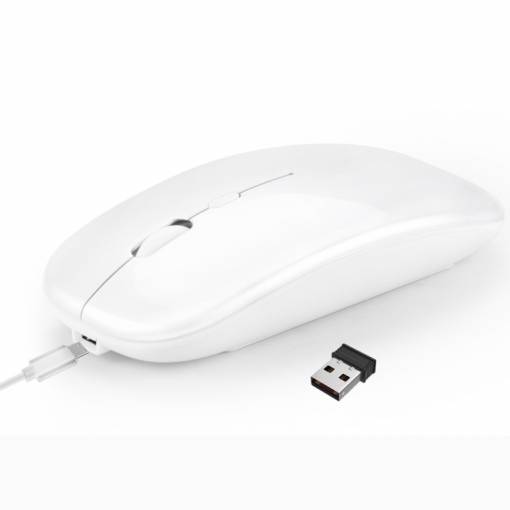 Mouse subțire elegant cu posibilitatea de ajustare a sensibilității (800-1600 DPI). Se poate conecta la computer prin bluetooth sau prin inserarea receptorului USB în portul computerului.