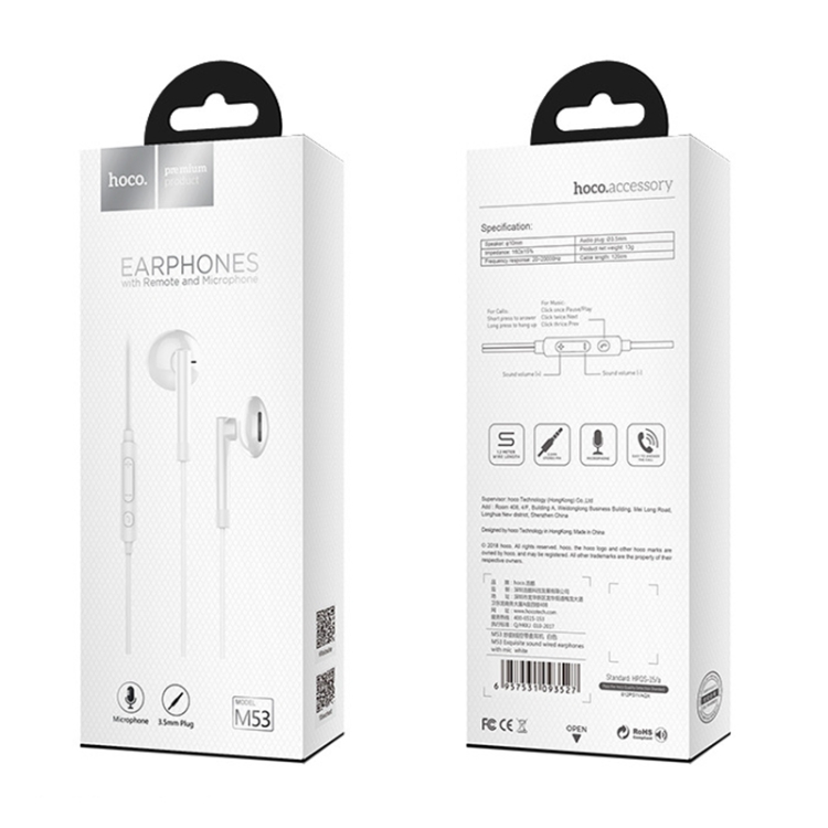 Căștile stilate și ușoare Hoco M53 oferă sunet de calitate și control confortabil. Microfonul încorporat cu buton de control permite primirea ușoară a apelurilor și controlul muzicii. Căștile au un conector clasic de 3,5mm, astfel fiind compatibile cu majoritatea dispozitivelor.