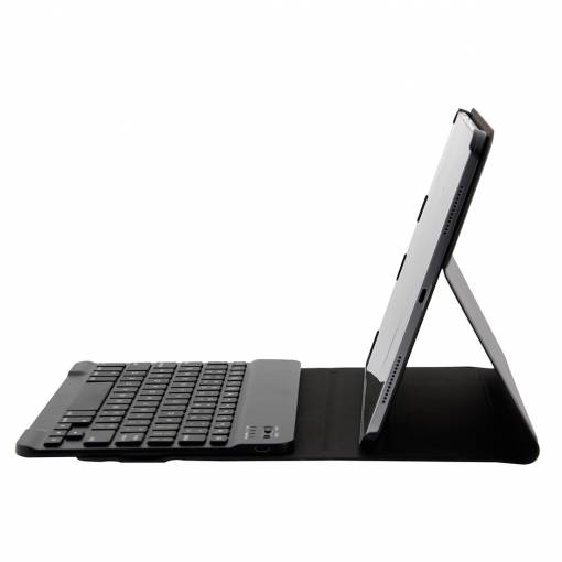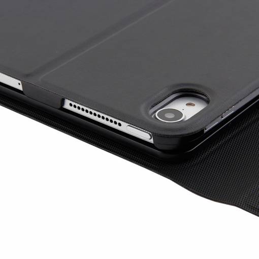 Tastatura Bluetooth face parte dintr-o carcasă rezistentă, care protejează iPad-ul Apple de zgârieturi și în caz de cădere.