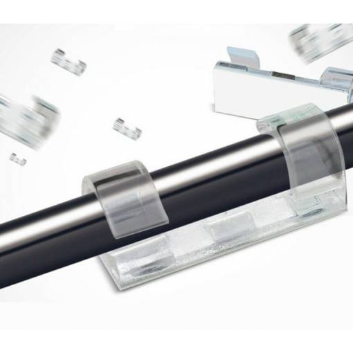 Clemele sunt fabricate din plastic moale prietenos cu mediu. Banda adezivă are o suprafață adezivă dublă pentru a asigura aderența.