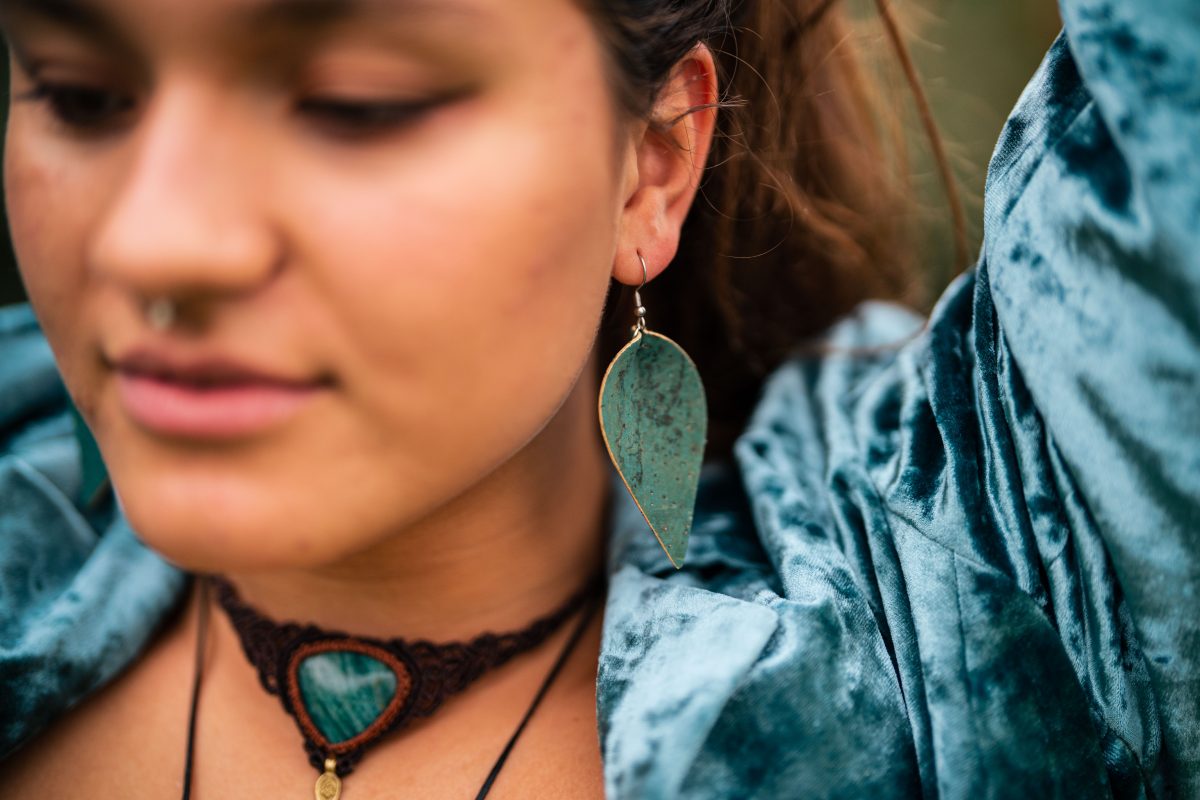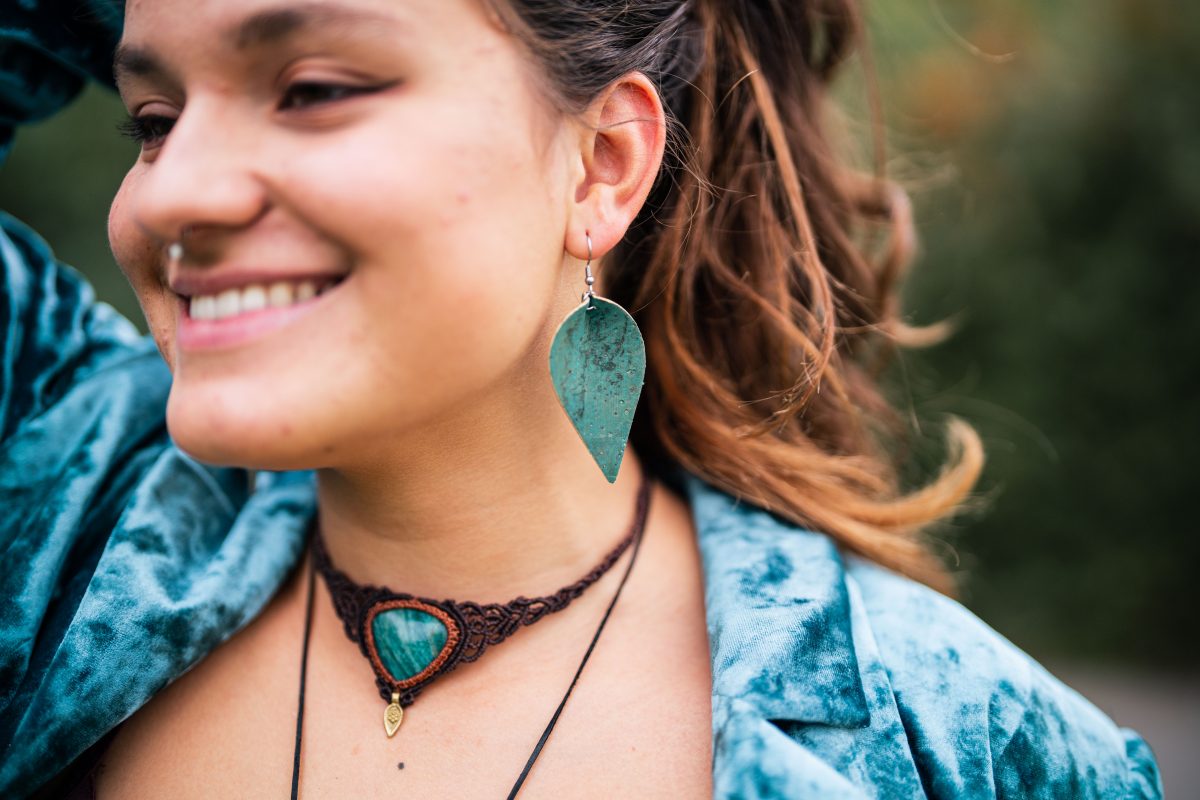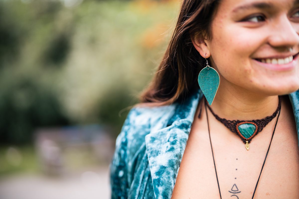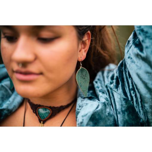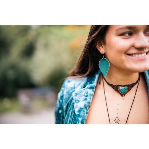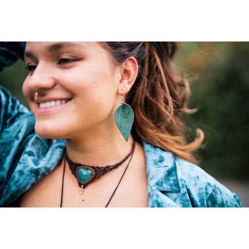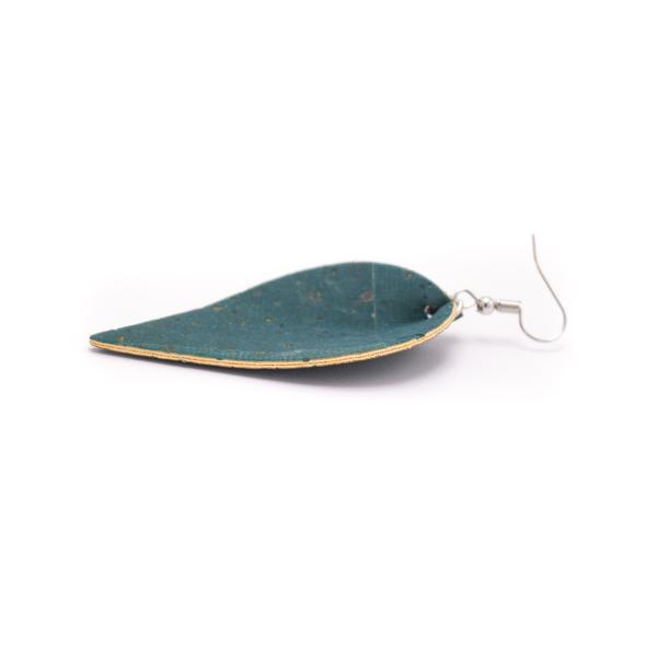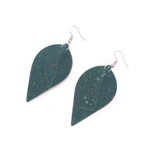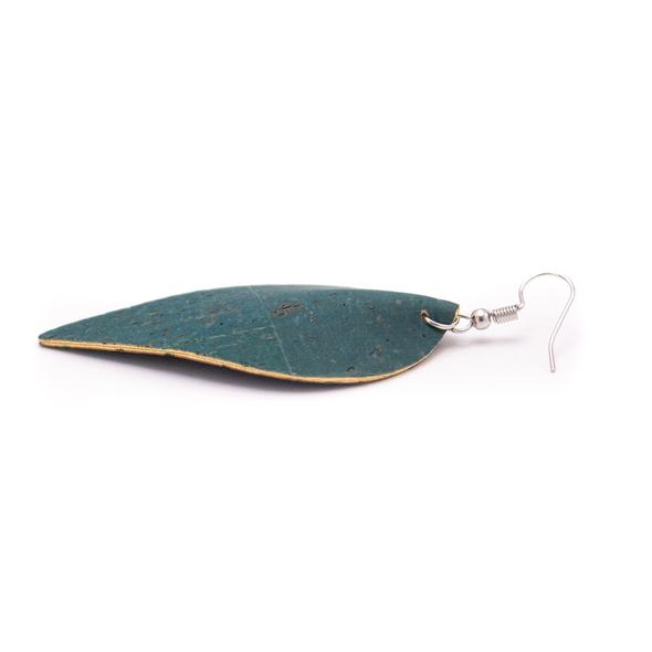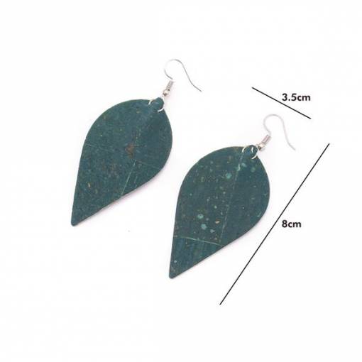 Pachetul conține o pereche de cercei din plută în formă de frunză.