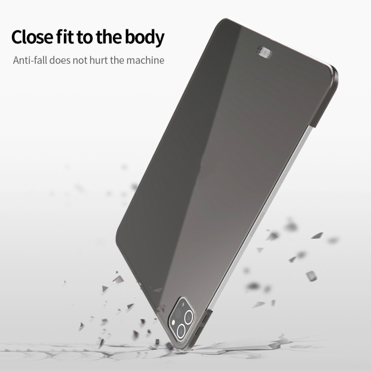 Carcasa pentru iPad Pro 12.9 (2020) oferă o protecție continuă. În cazul unei picături, impactul este amortizat de materialul elastic din silicon, prevenind în același timp zgârieturile și deteriorările suplimentare. Carcasa pentru Apple iPad Pro 12.9 (2020) protejează întreaga spate a tabletei, inclusiv marginile, în care sunt prevederi pentru butoane, difuzoare, căști și conectorul Lightning pentru conectarea încărcătorului. Carcasa transparentă nu diminuează eleganța tabletei Apple; pentru o protecție completă, este recomandat să achiziționați și sticlă securizată, care protejează ecranul împotriva zgârieturilor și crăpăturilor.
