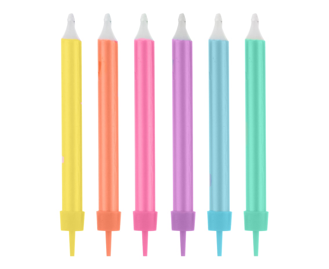 Adăugați tortului de ziua de naștere atmosfera festivă potrivită cu lumânările colorate.