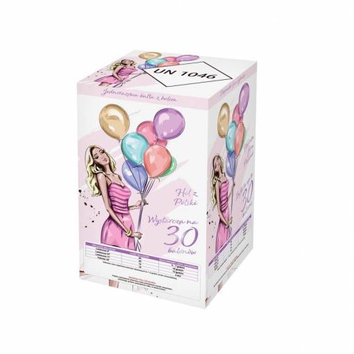 Sticla are un volum de 7 litri, această cantitate este suficientă pentru aproximativ 30 de baloane cu diametrul de 23 cm.