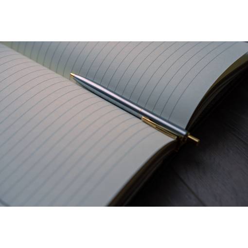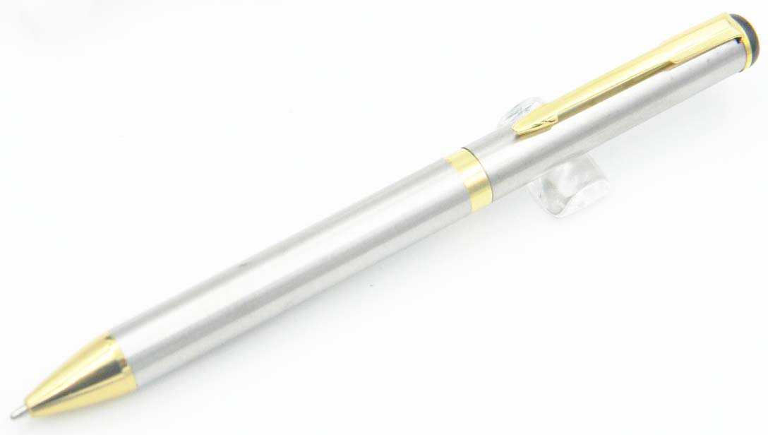 Pix elegant cu un corp modelat și mai gros din plastic durat și un vârf din oțel inoxidabil, pixul se închide cu un capac filetat.