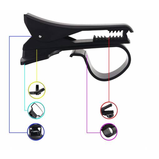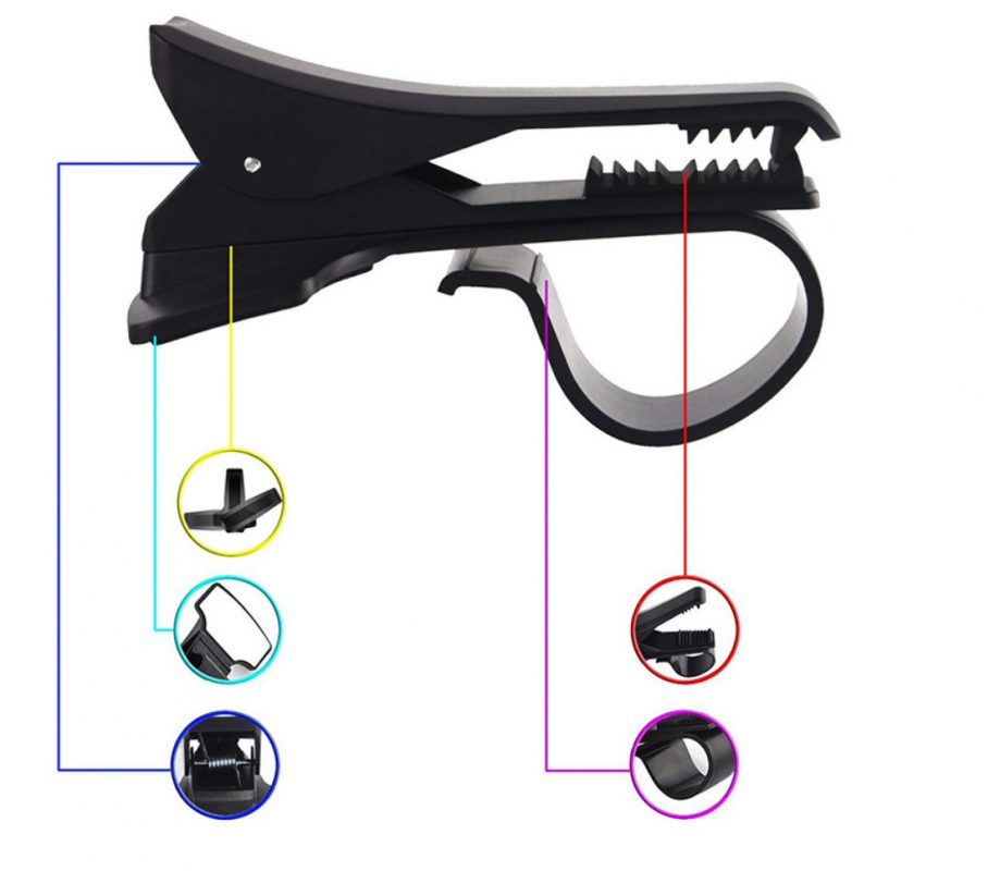 Suportul este unic prin faptul că se fixează pe volanul mașinii și nu obstrucționează vederea; funcționează ca un clip, astfel că se fixează foarte ușor prin agățare și prin foaie adezivă.