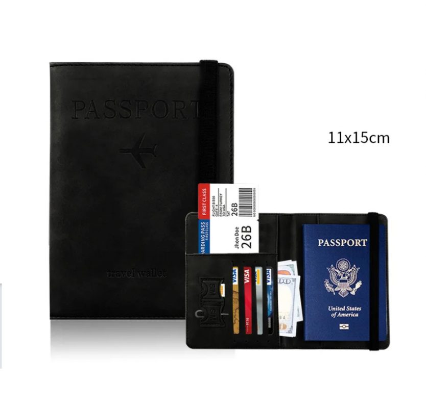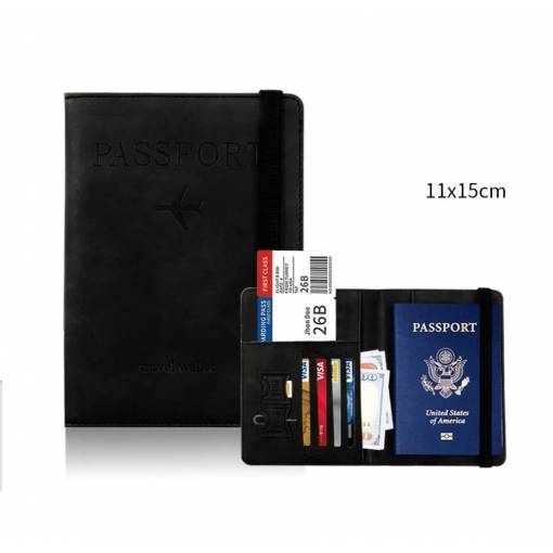 Pachetul conține o husă pentru pașaport și bilete de avion.